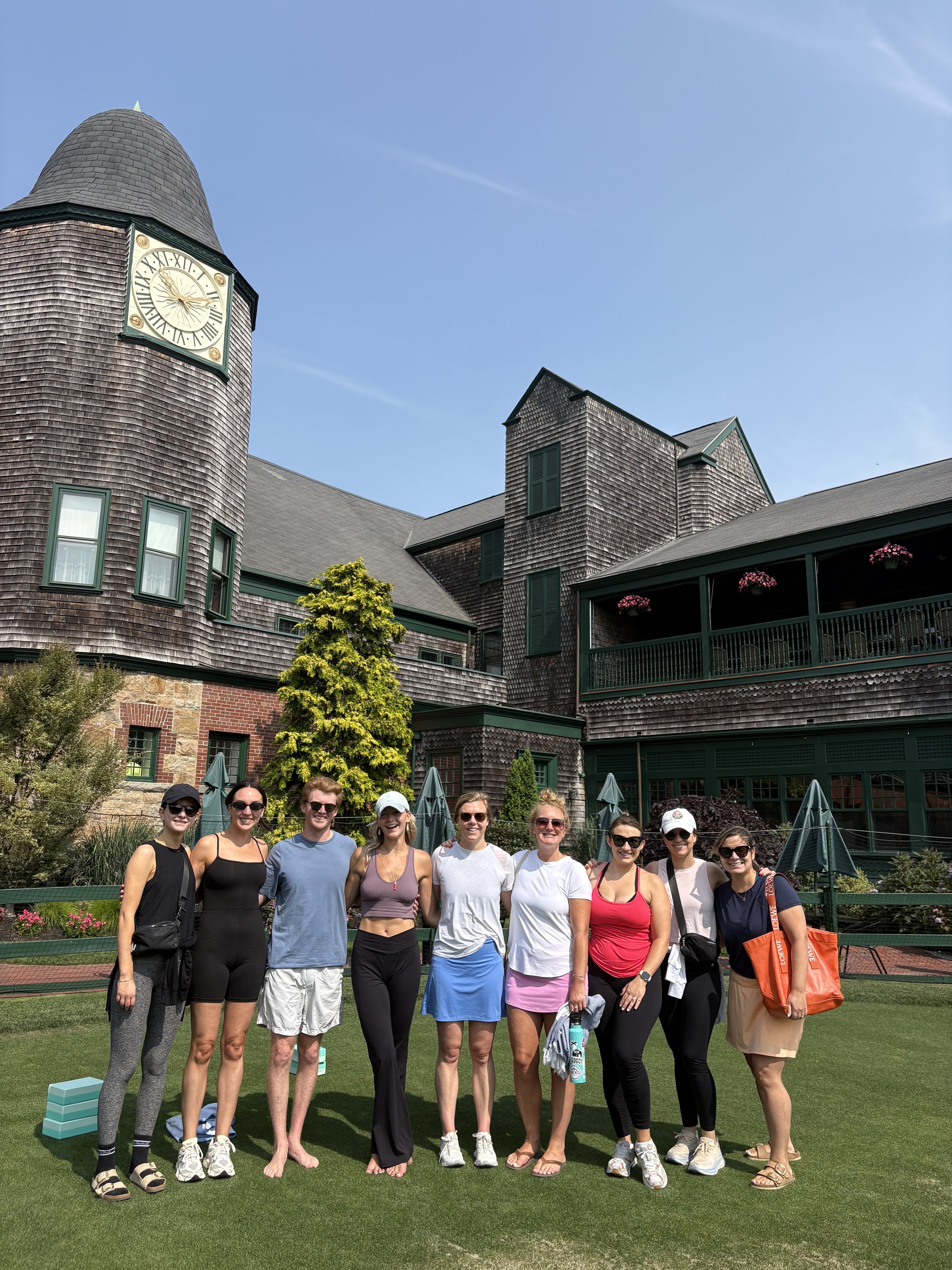 I offer private, personalized yoga sessions for groups. Whether at your Airbnb, backyard, hotel lawn, or through a reserved class at the International Tennis Hall of Fame.