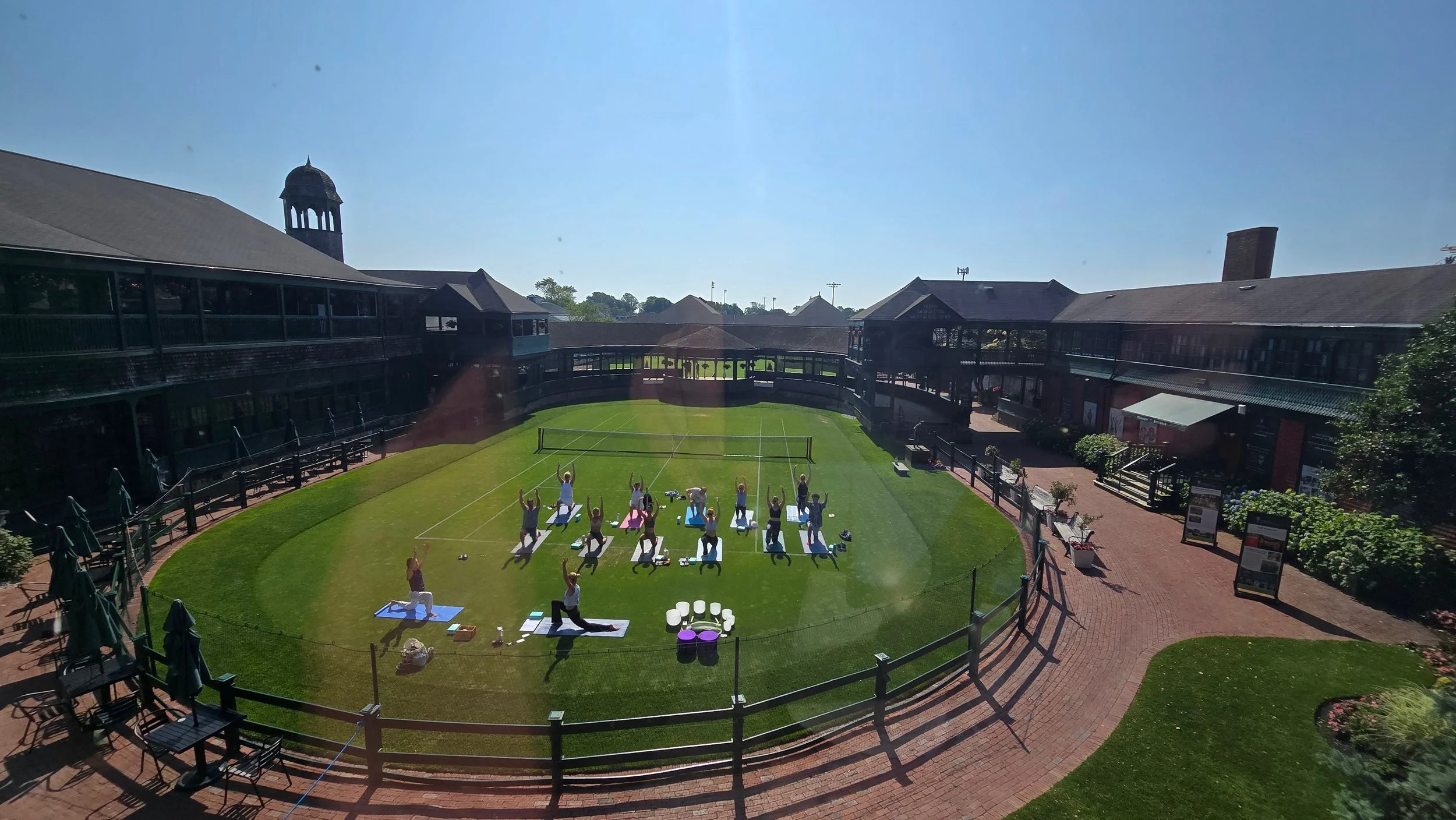 Optional Add-On: For groups looking for a unique venue, private yoga sessions can also be hosted at the Hall of Fame tennis courts for a beautiful and unexpected setting right in Newport.